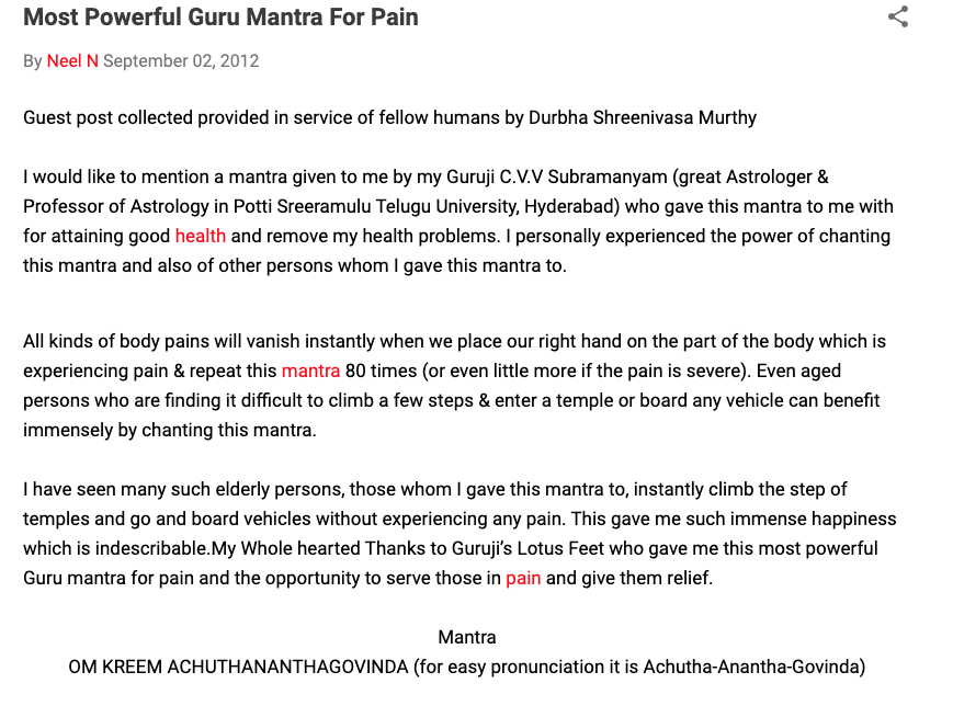 will be cured of their diseases. THAT caught my attention and sent me on a search for several hours. The first thing I had to do was figure out if a sloka was the same as a mantra only sung. This article explains that it is.