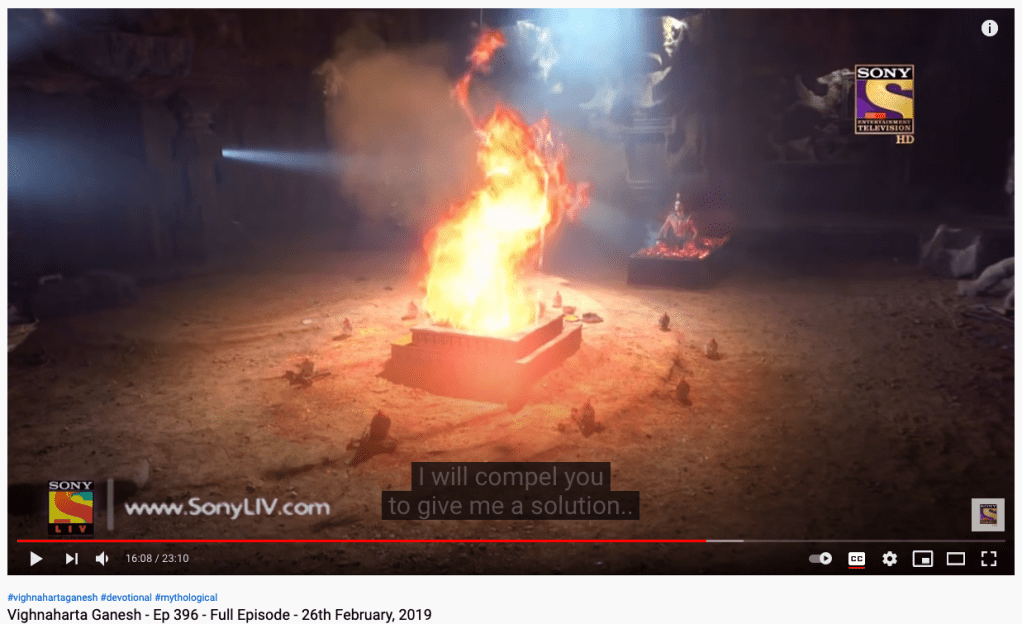 I’m not sure if you need me to “unpack” that paragraph or not. There are many forms of tantra but if you re-read this paragraph you might notice the summoning of the “WRATHFUL” aspects of a deity. In the TV series Vighnaharta Ganesh the infamous asura Durgamasur in Episode 395 prays to a “form” of Mata Adishakti known as Nimavata in front of a puja fire. Durgamasura prays to summon Mata to seek help. In the next episode Durgamasur is hell bent on compelling the goddess to tell him how to defeat Mata Adishakti.
