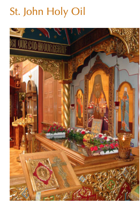 ** Thinking I was going to San Francisco I wanted to visit the shrine to John (Maximovitch), Archbishop of Shanghai and San Francisco (1896-1966). St. John was referred to as the WONDERWORKER. There are vials of holy oil you can send for. I had written to the church and asked if I could have a tour? No, but I was told they were sending me three bottles of the oil for FREE!