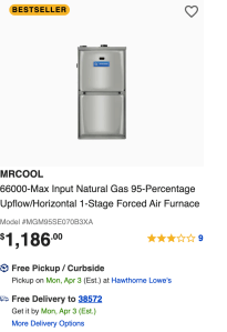 Cost of a gas furnace assuming the federal government doesn’t outlaw them.