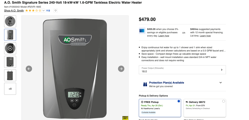 Cost of a gas operated tankless water heater – the electric powered ones suck.