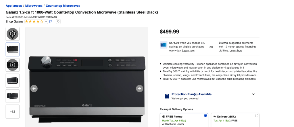 Cost of a microwave/air fryer that I can have on the counter.
