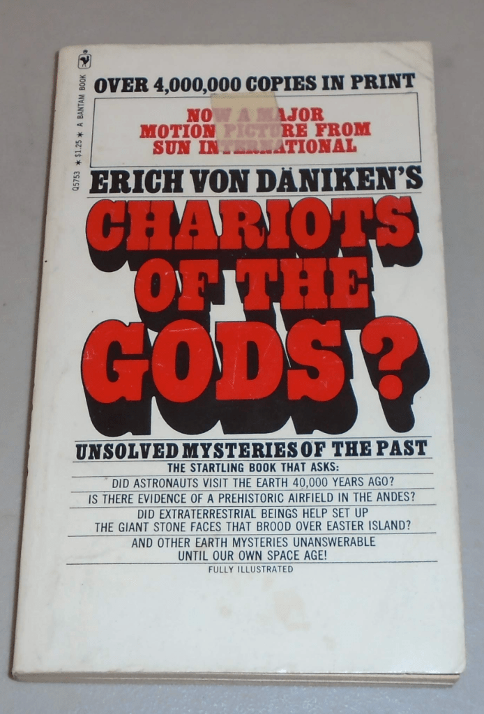Books about ancient aliens started appearing. I STILL remember buying the first printing of the paperback edition of Chariots of the Gods by Erich von Däniken in the local bookstore in downtown Westfield, New Jersey. I used my babysitting money to buy it. It was on one of my first walks downtown from home on my own with a classmate who was also obsessed with UFOs and ancient history and Sherlock Holmes.