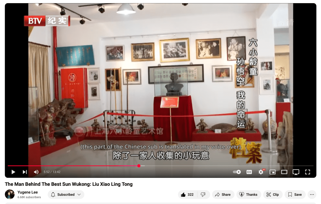 The series struck a memory I just could not dredge up. All I knew was I was hooked and Sun Wukong became something of an obsession. I had to find every version of the story. I’m not as obsessed, however, as my pen pal, Jim R. McClanahan, nor the actor who is considered the ultimate Monkey King, Zhang Jinlai,章金莱, stage name, Liu Xiao Ling Tong (六小龄童; ‘Little Six Year Old Child’), who has an entire museum dedicated to Sun Wukong which Yugene Lee shares in her video.